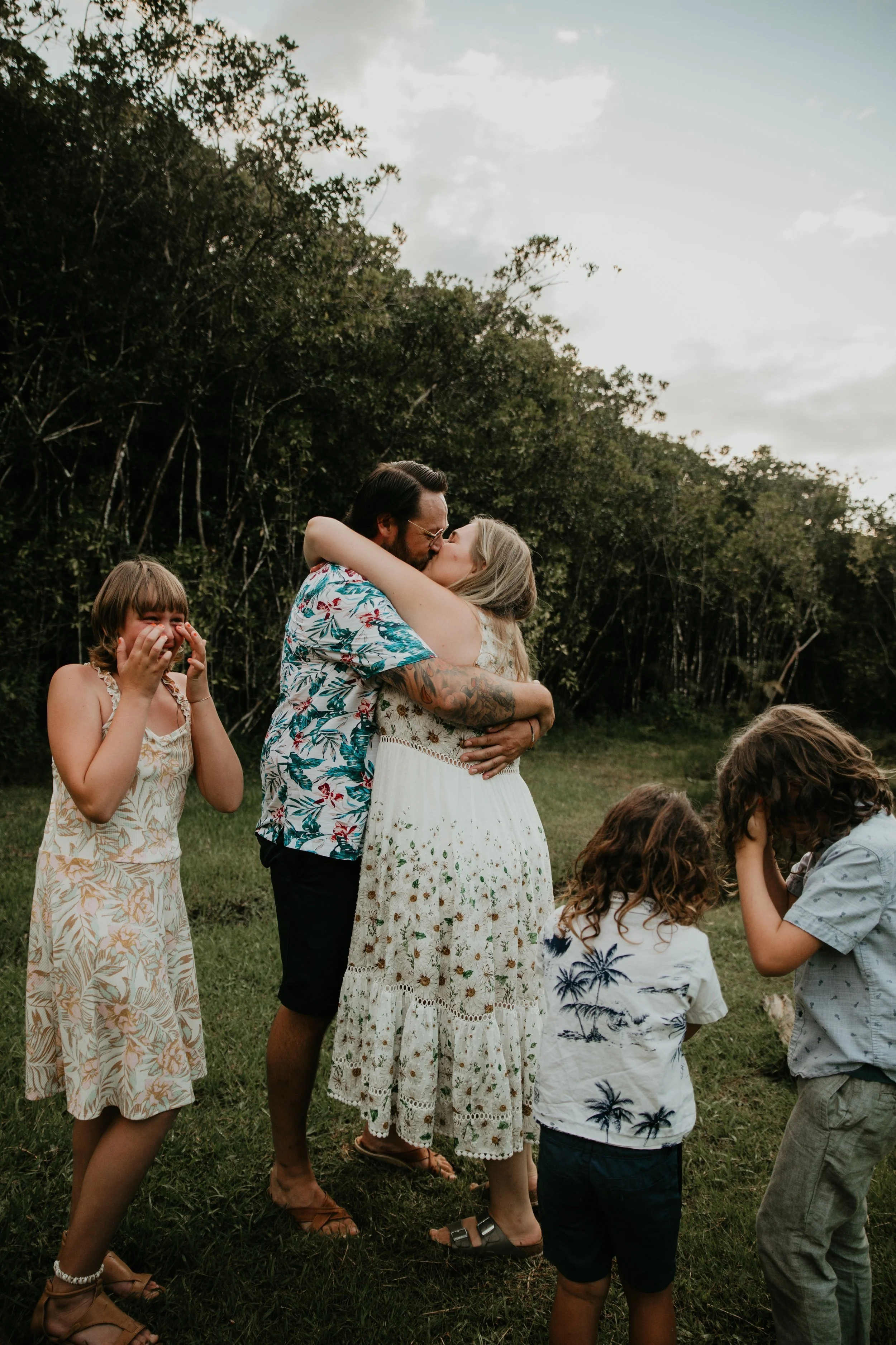 J: Tom planned a family photoshoot at my parents’ house… during which he got down on one knee and asked me to be his partner, love, best friend and soulmate forever. (As if there was any question!) I was in a bliss bubble. We spent the remainder of our trip helping manage the psychological shifts of our children and celebrating our new official status as almost married people. I have never been more in love and spending time melting into my soulmate’s eyes in a Kauai sunset was something I could never be more grateful for. We had an incredible trip and came back like two love birds ready to nest. We had been splitting time between Thousand Oaks and Ojai for almost a year and the distance was weighing on us. Sleepovers were happening regularly with Miles sleeping in Tom’s guest bed in Ojai and Stella & Charlie sleeping on the pull out couches in Thousand Oaks. We were starting to feel a little burnt out on that chaos. SO since we waste NO time, we started house shopping. (That felt safer than wedding planning during covid, anyway. But we’ll start that soon!) After a few months of light house shopping, we came across the piece of land where the Murphy/Rotter clan should forge our lives together. And with the help of our ANGELIC realtor, we somehow managed to sell my first home, buy our first home together and become the Brady Bunch.